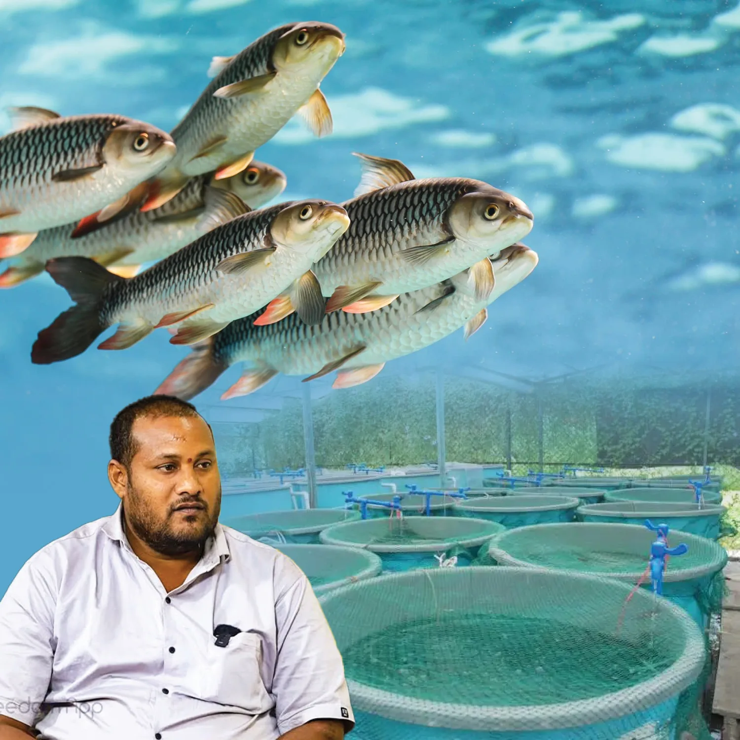 उपयोगकर्ता का व्यवसाय काकीनाडा में स्थित है और इसमें मछली पालन शामिल है। श्रीनिवास ने मछली पालन में आने से पहले 20 साल तक दो अलग-अलग दुकानों में टाइल्स और ग्रेनाइट का काम किया। उन्होंने छह महीने पहले 8 लाख रुपये के निवेश के साथ अपना मछली पालन व्यवसाय शुरू किया, फुरु, सिलावती, रागंडी, और कतला जैसी मछलियों को बिना खिलाए पालना शुरू किया। उन्होंने बिना चारे के मछली पालने के नुस्खे सीखे और मछली पालने के लिए गाँव के तालाबों में गए, जो चारे के साथ उगाई गई मछलियों से बेहतर बढ़ी।